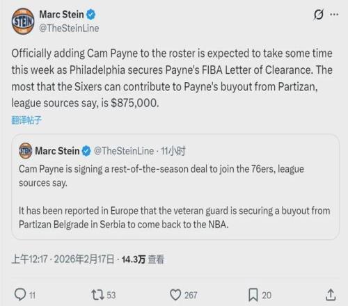 也就是说,剩余的87.5万买断费需要佩恩自掏腰包。2024年夏天,亚布塞莱为了重返NBA,自己支付了165万美元的买断费、加盟76人!2025年10月份,步行者曾经给了佩恩一份训练营合同,佩恩被裁之后离开NBA、前往欧洲打球。