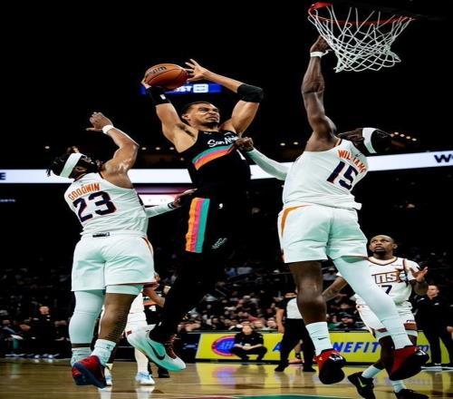 2月20日,NBA常规赛战火继续蔓延,圣安东尼奥马刺队坐镇主场,迎来了菲尼克斯太阳队的挑战。这场比赛在赛前便备受关注,双方在西部联盟的排名处境截然不同。马刺队赛前战绩为38胜16负,高居西部第2位,展现出了极强的竞争力;而太阳队则以32胜23负的战绩暂列西部第7位,正处于为季后赛席位奋力拼搏的阶段。然而,比赛的进程却并未呈现出势均力敌的态势,马刺队凭借强大的整体实力,从开场便占据了主动,最终以121-94的比分大胜对手,收获一场酣畅淋漓的胜利。