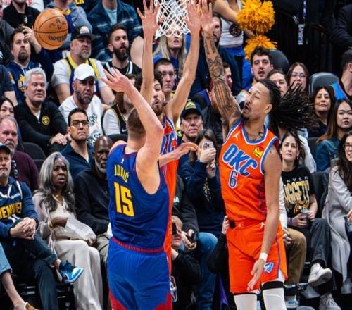 从4组数据说起,本赛季约基奇场均28.5分12.4篮板10.6助攻,两项命中率58%+40%,高阶效率值依旧夸张,但自从1月底打快船复出后,他仿佛换了个人。1月底和快船复出一战,25分钟11中8,罚球17中13,掘金最后赢得并不光彩,而约基奇只用11次出手换来17次罚球,东契奇和亚历山大都比不了!此后面对雷霆,那是遇到对手了,约基奇发挥欠佳,只有16分7篮板8助攻入账,还有6次失误。包括输给活塞的24分,输给尼克斯的30分(三分球13中1),赢公牛相对还好,之后打骑士,又是只有11次出手,换来12次罚球。