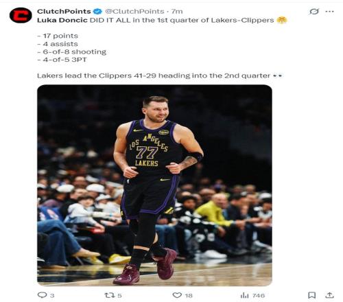 北京时间2月21日,在NBA常规赛焦点战中,湖人主场125-122险胜快船。本场东契奇发挥十分出色率队取胜,他全场出战3...