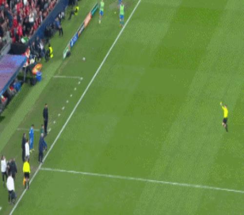 第85分钟,本菲卡的进攻,里奥斯被维尼修斯、卡马文加联合夹击撞翻在地,本菲卡获得任意球。